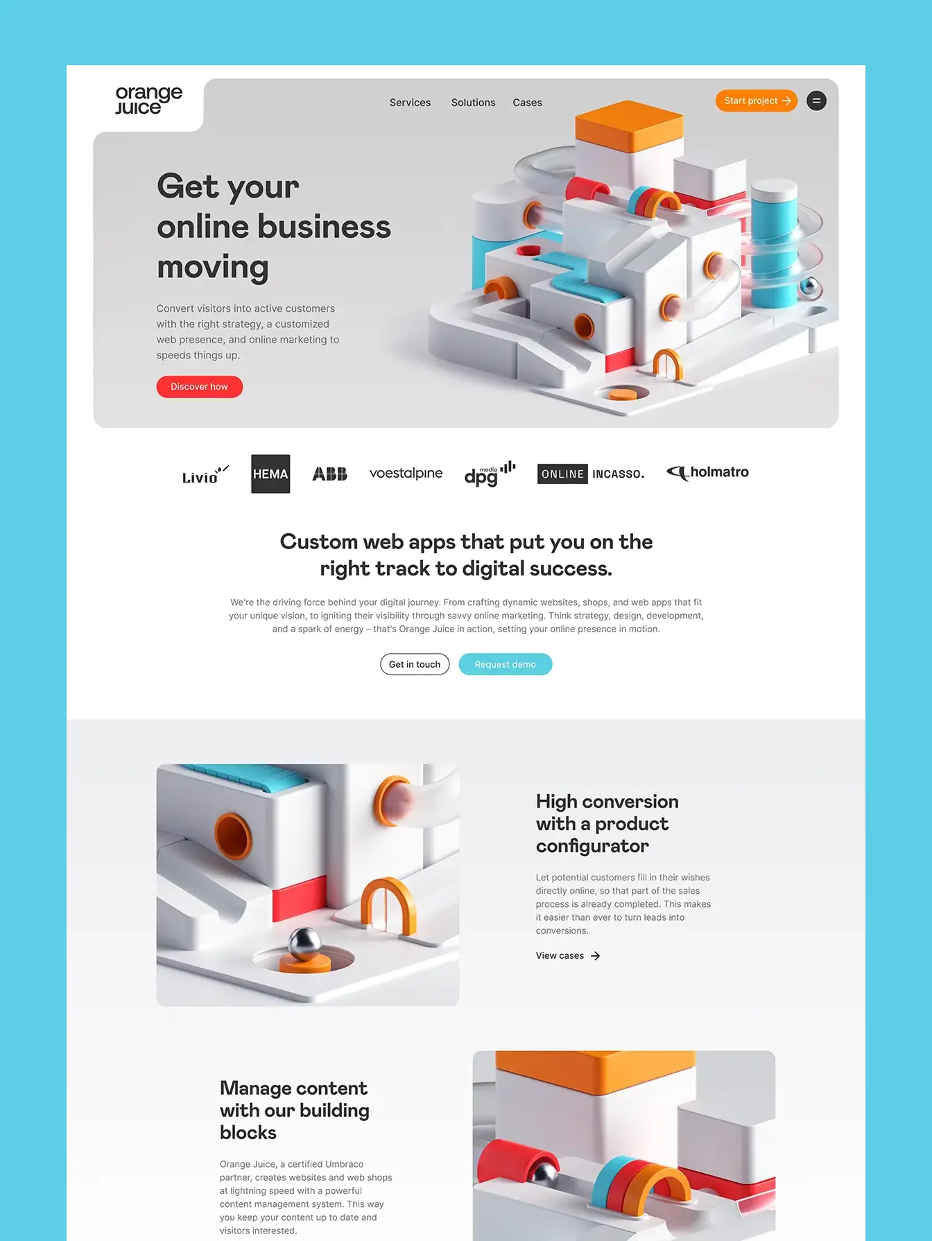 Orange Juice builds functionally powerful web applications, brought to life in the concept of energy: digital “machines” that set business models in motion. Built on the pillars explore, shape, accelerate, the identity captures functionality and flow in a simple, playful way.