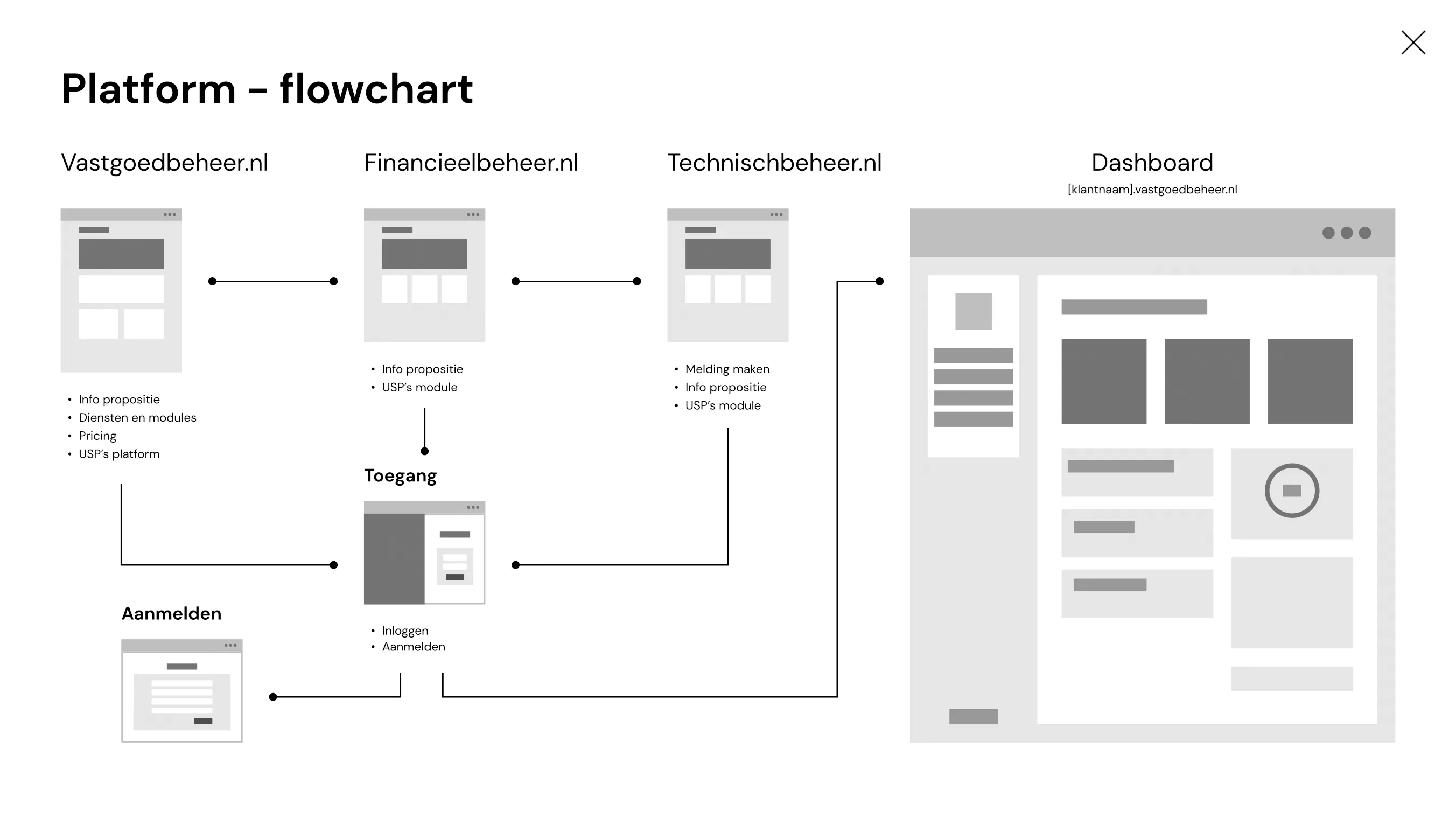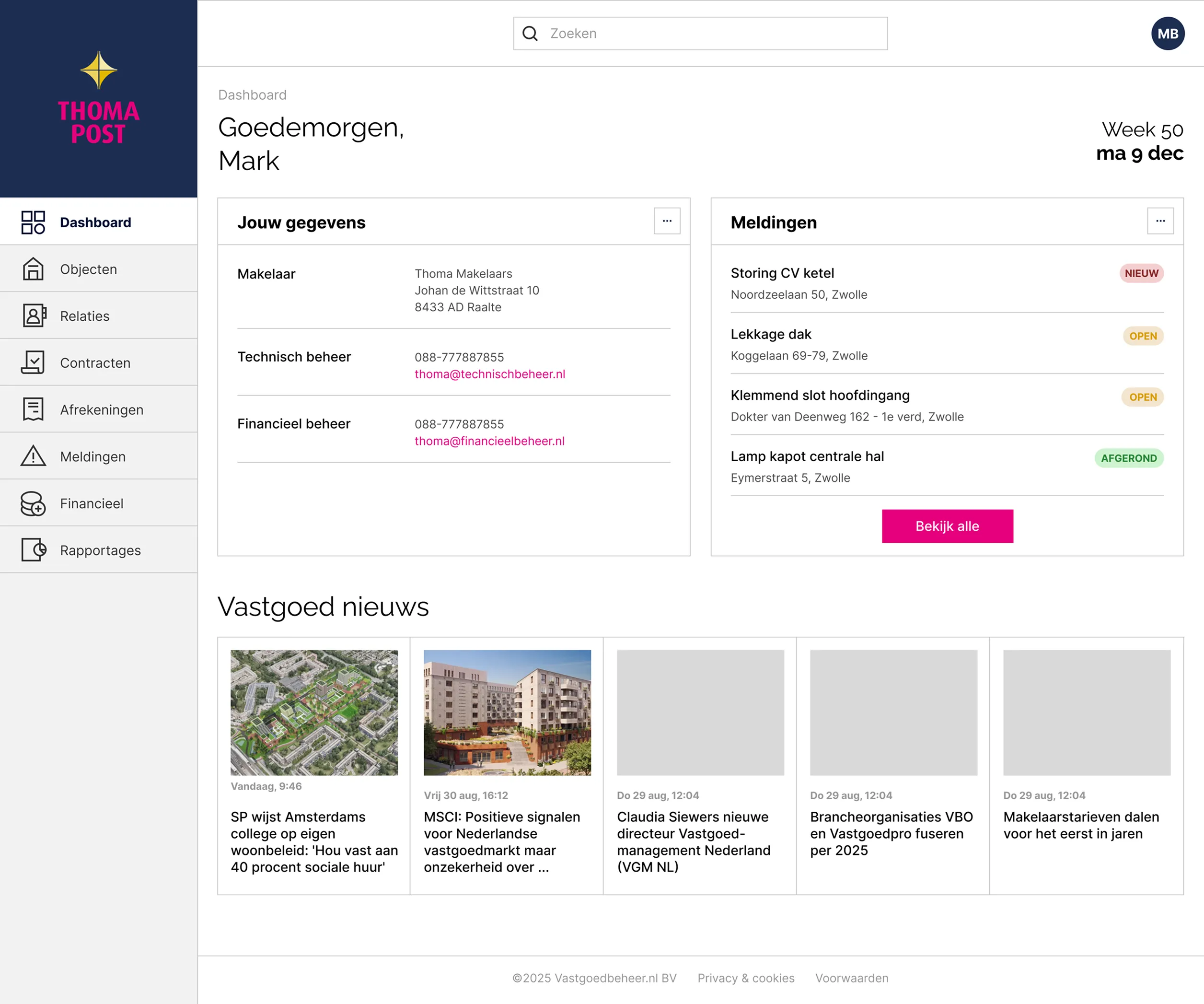 Vastgoedbeheer.nl centralizes data in one hub, bringing brokers, owners, and partners together. From this foundation, modules and tools can be added, keeping the platform flexible.