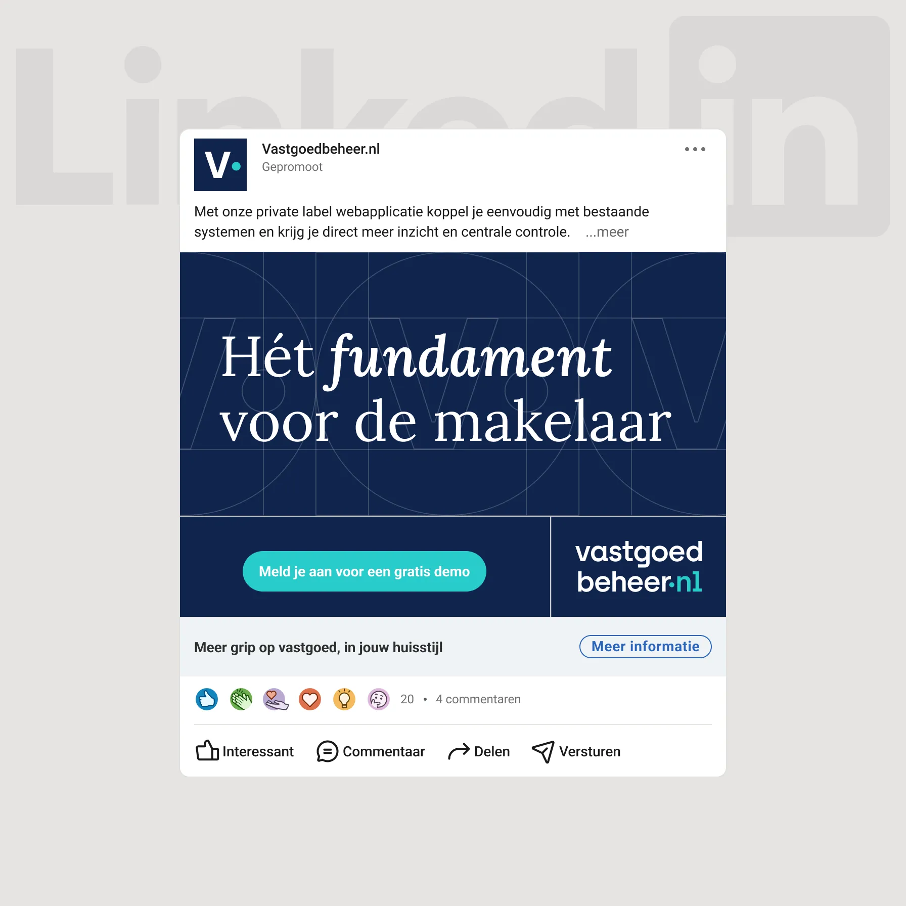 Becoming the new online standard in real estate management, that’s the ambition of Vastgoedbeheer.nl. The brand identity and interface I designed provide users with access to an ecosystem where everything can be managed in one place.